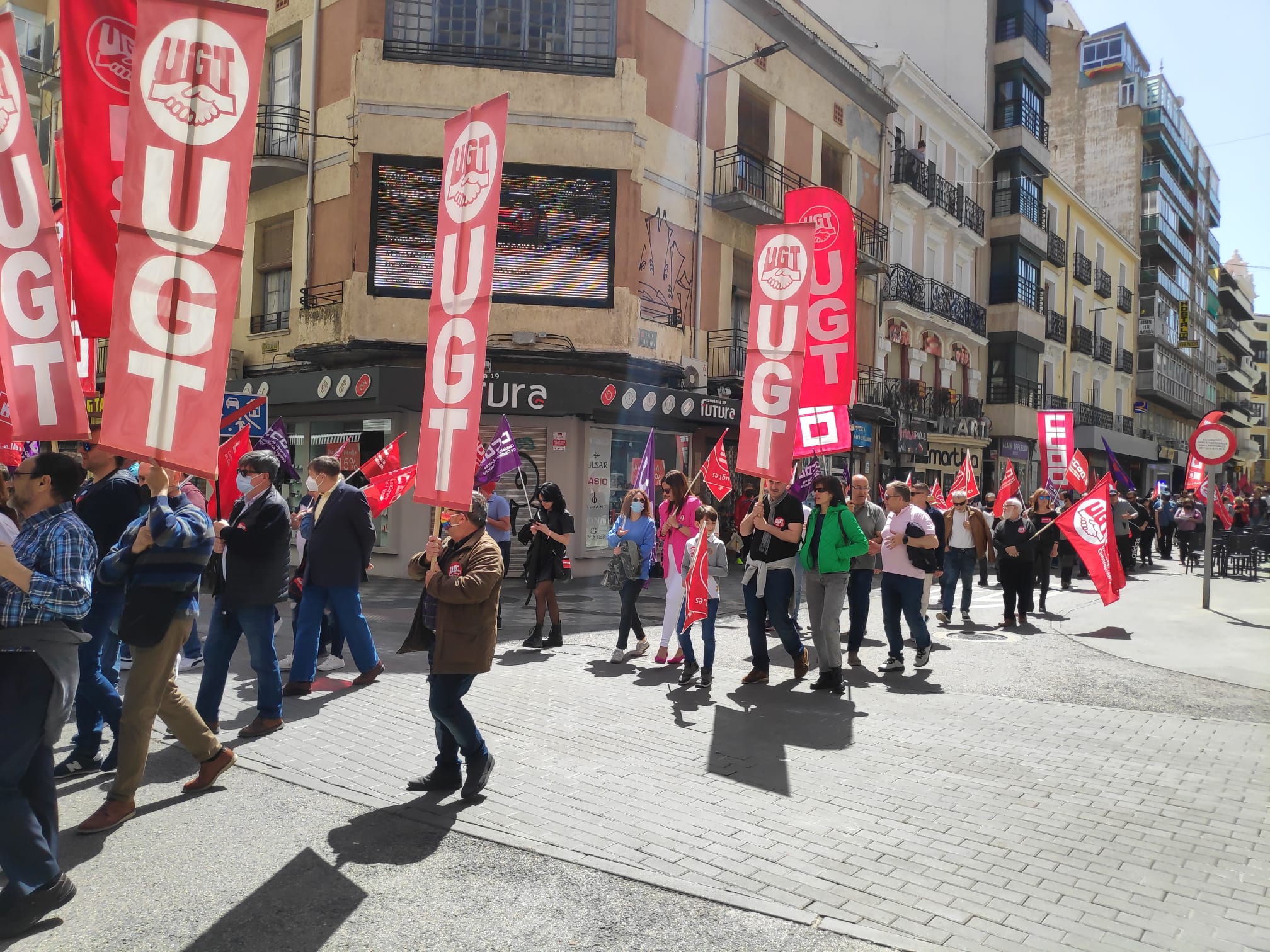 La marcha ha partido desde la estación del ferrocarril y ha recorrido el centro de la capital conquense hasta la plaza de España. En la cabecera estaban el secretario general de UGT de Cuenca, Vicente Martínez y la secretaria general de CCOO Cuenca, María José Mesas. El alcalde de Cuenca, Darío Dolz, la subdelegada del Gobierno en Cuenca, Mari Luz Fernández, la diputada Gracia Canales, la senadora Carmen Torralba y líder de IU Cuenca, Pablo García, han sido algunos de los políticos que se han podido ver secundando la manifestación.