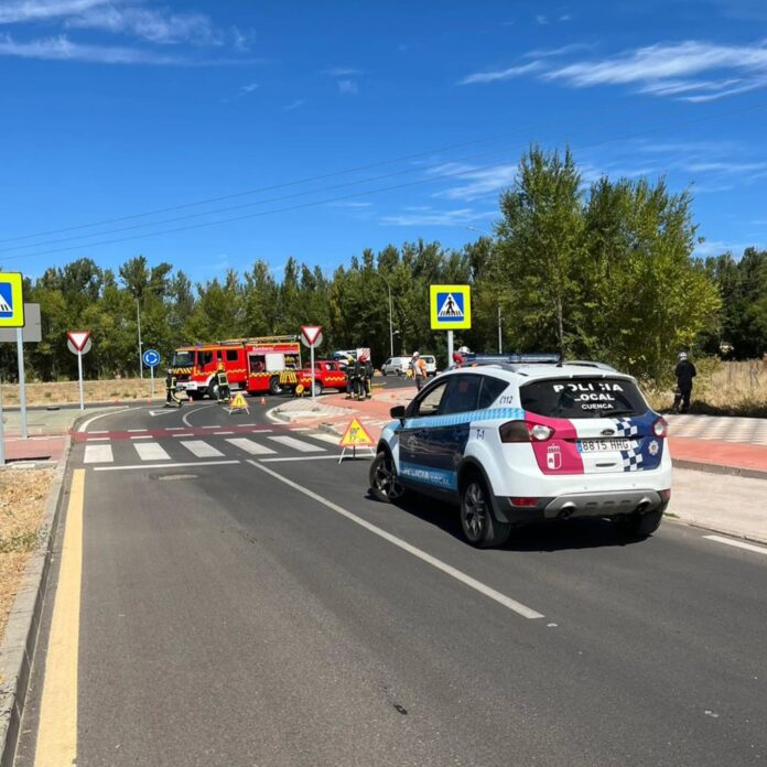 Los bomberos del parque de Cuenca actúan en la rotonda más próxima al Hospital Universitario de la capital conquense, en El Terminillo, debido a la perforación de una tubería de gas.