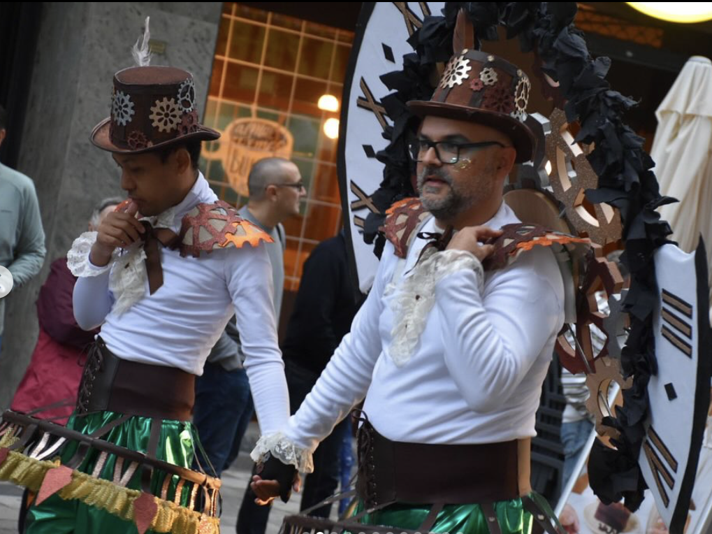 A continuación, la Asociación Amigos del Carnaval de Cuenca junto a los colectivos ‘Tempus‘ y ‘Queen’s Gambit’, sendos ganadores del último concurso de comparsas y grupos del Carnaval 2025, han desplegado una vez más su talento. Sus coreografías milimetradas y los disfraces hechos a mano han sumergido al nutrido grupo de conquenses que les acompañaba desde el acerado dentro de un reloj, viendo el paso del tiempo como un juego, y sobre un tablero de ajedrez en el que las reinas eran las grandes protagonistas. Entre los dos grupos, el Club Deportivo Huécar ha realizado una brillante demostración de gimnasia rítimica sin perder el carácter inclusivo que les caracteriza.